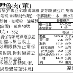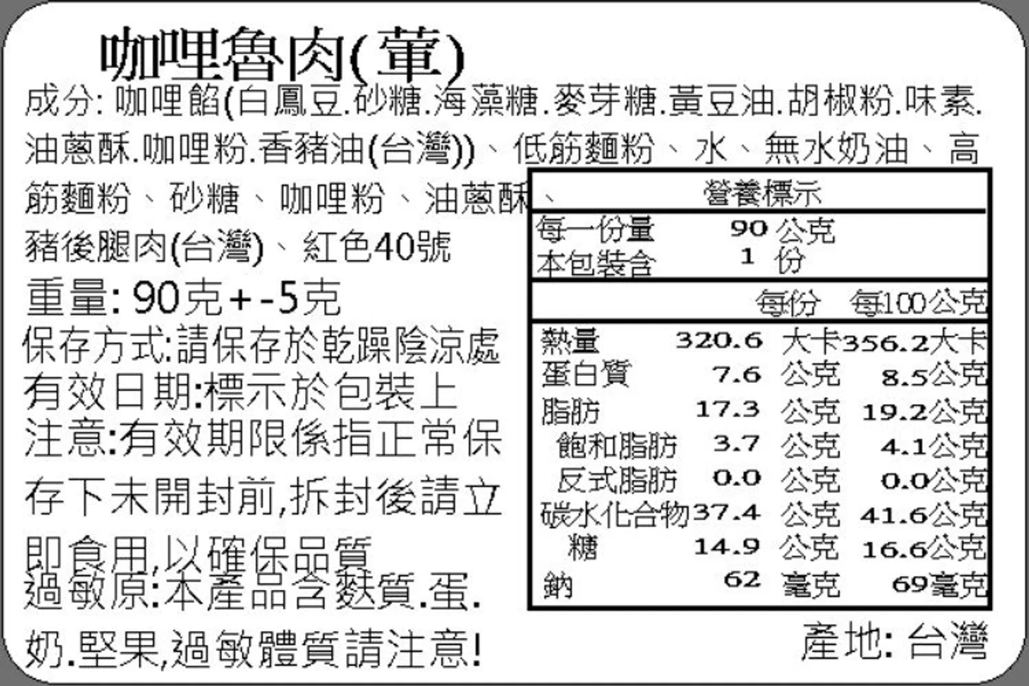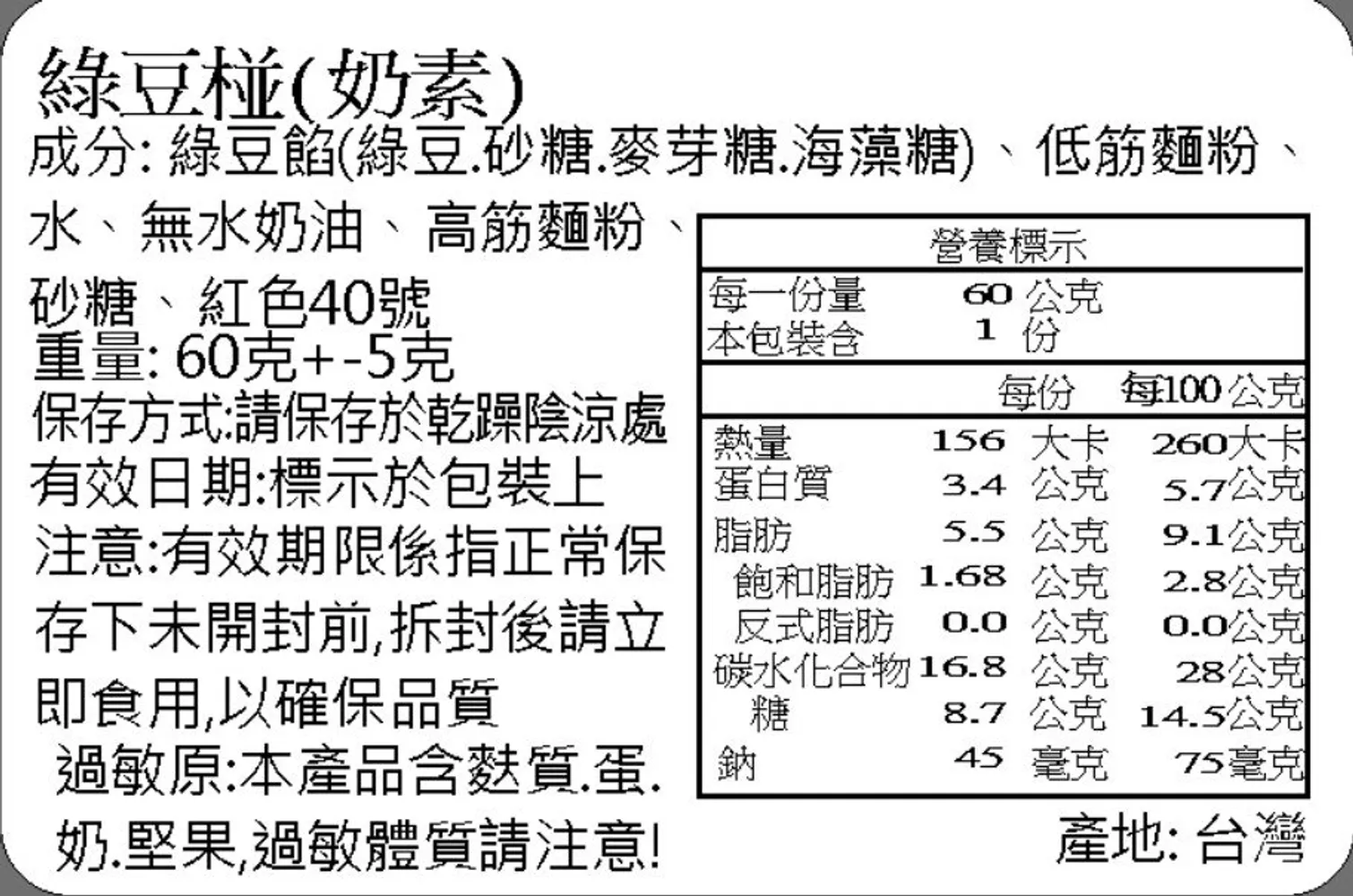 | 包裝 | 傳統6入(白豆沙*2、綠豆碰*2、咖哩魯肉*2), 傳統9入(白豆沙*3、綠豆碰*3、咖哩魯肉*3), 傳統12入(白豆沙*4、綠豆碰*4、咖哩魯肉*4) |